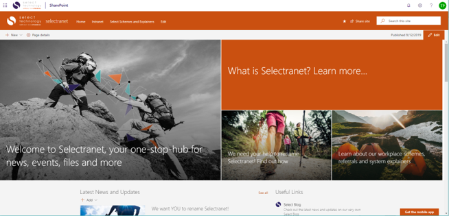 Well, our newly updated version of SharePoint, fondly named Selectranet, acts as our hub for all internal communications, news, updates, events and useful links. It’s a living, breathing, evolving wealth of knowledge that is available 24/7 to all staff. A bit like a social media platform, it also allows users to engage with anything that’s on there. People can comment their ideas, ‘like’ comments or news articles and ultimately engage. You can even send email notifications when a news update has gone live, so the team know there is new content to read.