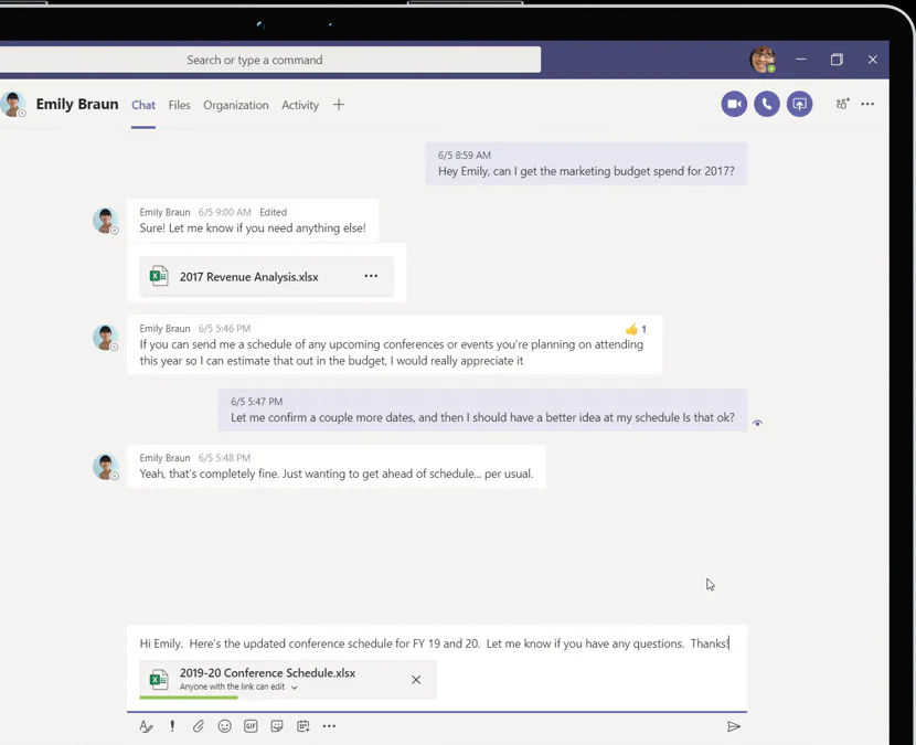 We see customers use Teams for collaborating on files, planning shifts, managing approvals, enabling customers to book services through the Bookings app, and even integrating with services such as Adobe Creative Cloud and SurveyMonkey. It is also highly configurable so you can add services to the core chat function, like searching Wikipedia and sharing to colleagues.