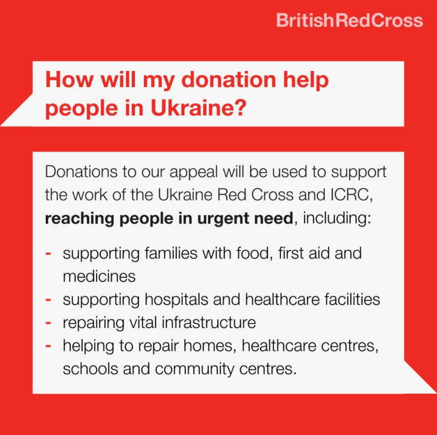 We wanted to show our support with a donation to the British Red Cross, who have launched an emergency appeal to support the humanitarian response in Ukraine alongside the Ukrainian Red Cross.