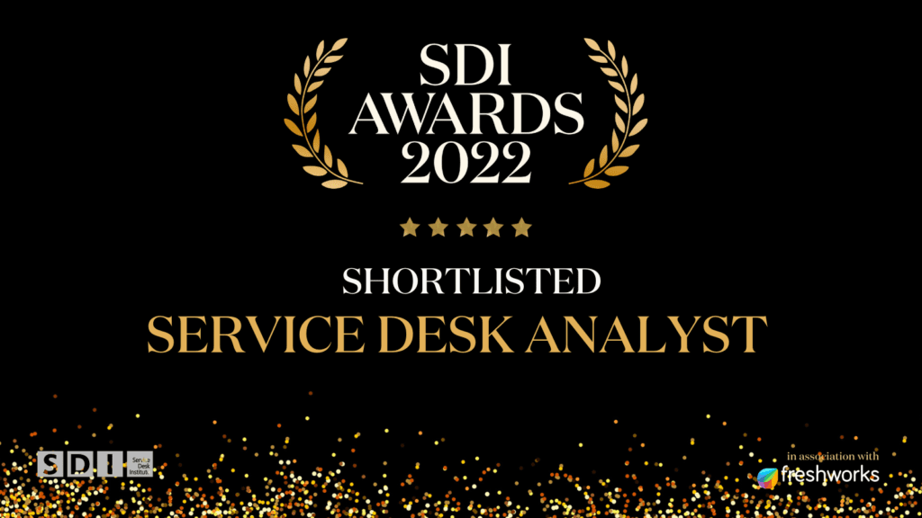 We are proud to announce that Select Technology has been shortlisted for THREE Service Desk Institute Awards. The company has been recognised in the Best Managed Service Provider 2022 category, and two of our outstanding Service Desk Engineers, Tom Lovegrove and Scott Newbury, have made the shortlist in the the Service Desk Analyst of the Year category.